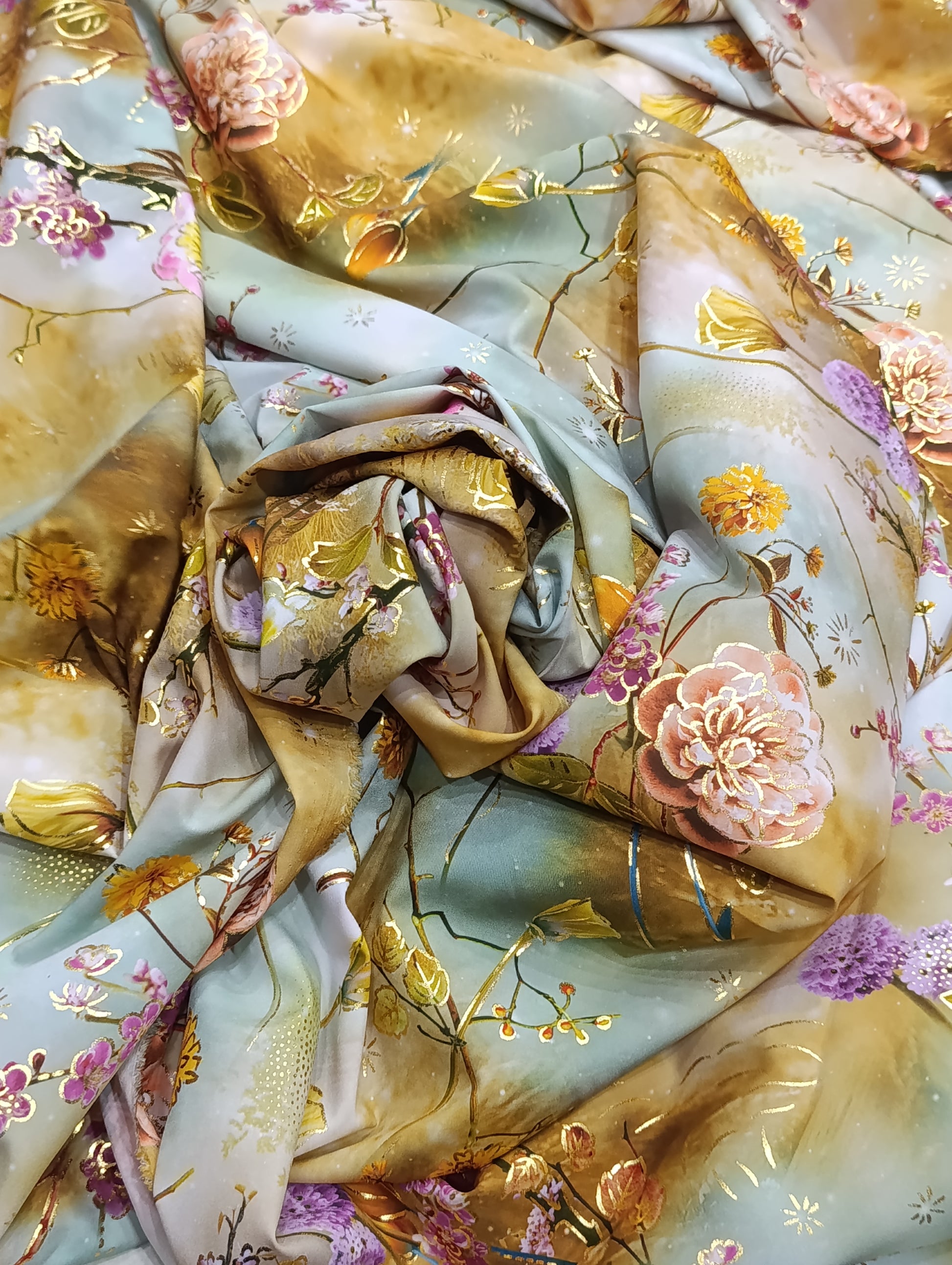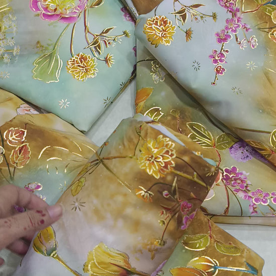2PC CHINA SILK GOLD STAMP PISTA YELLOW