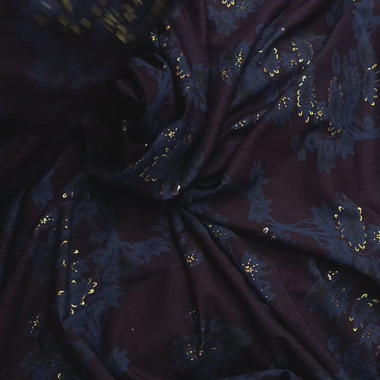 2PC CHINA SILK GOLD STAMP PLUM BLUE
