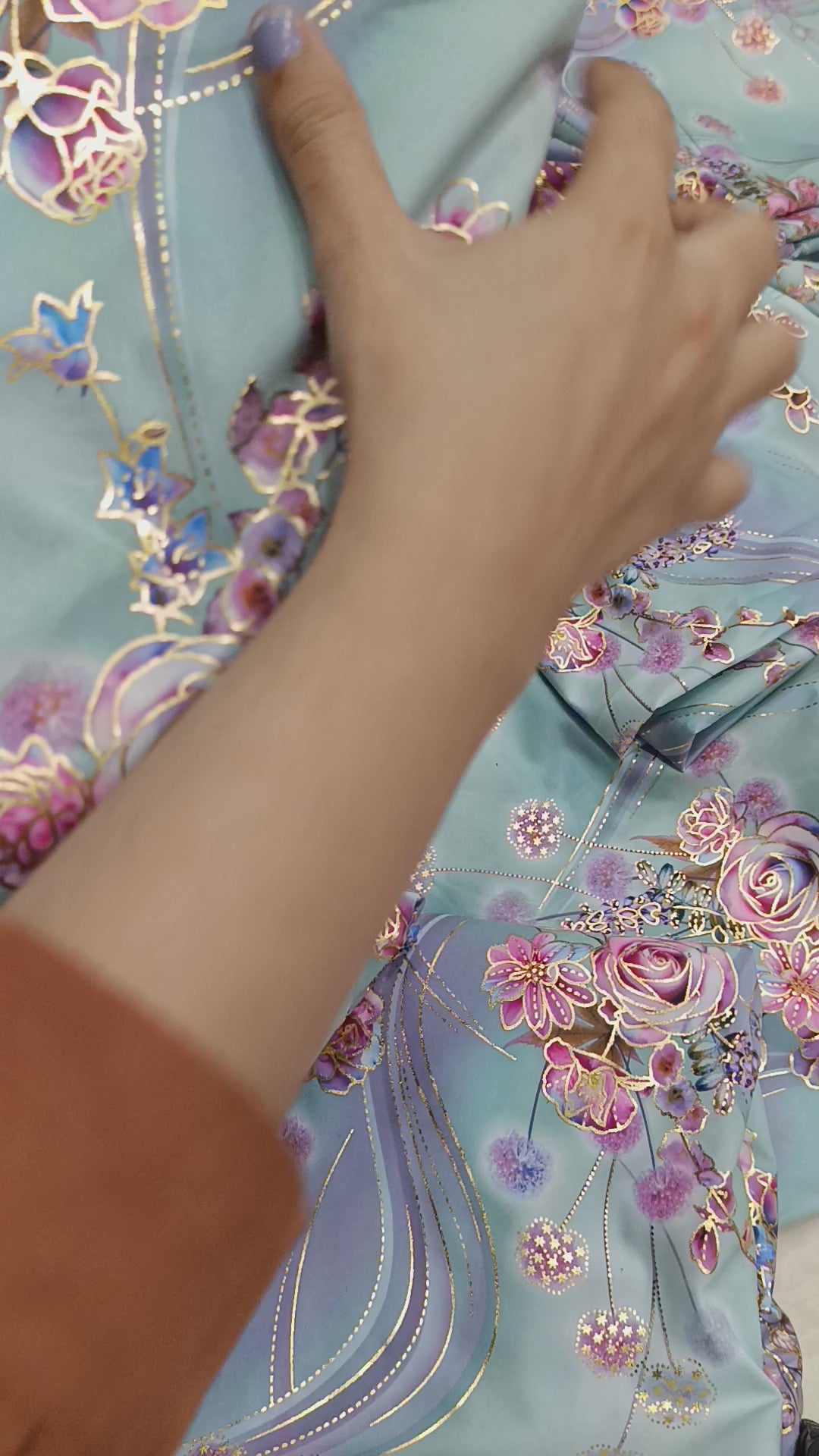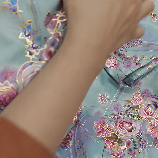 2PC CHINA SILK GOLD STAMP SKY BLUE