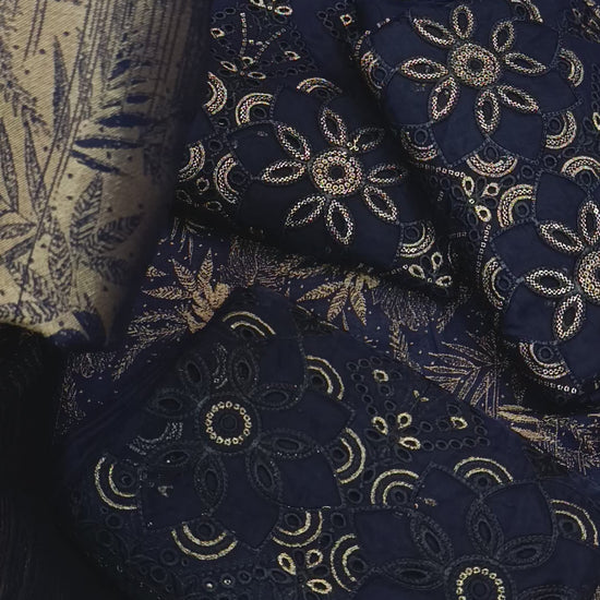 3pc Dhanak lazerkari with kanni shawl navy blue