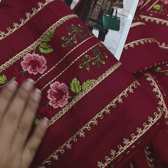 3pc Dhanak maria b inspired ayza Khan maroon