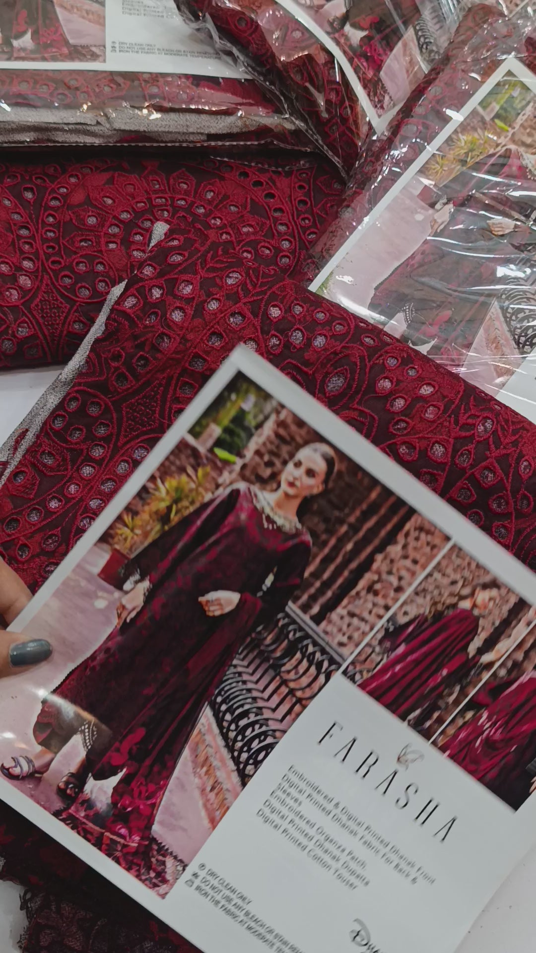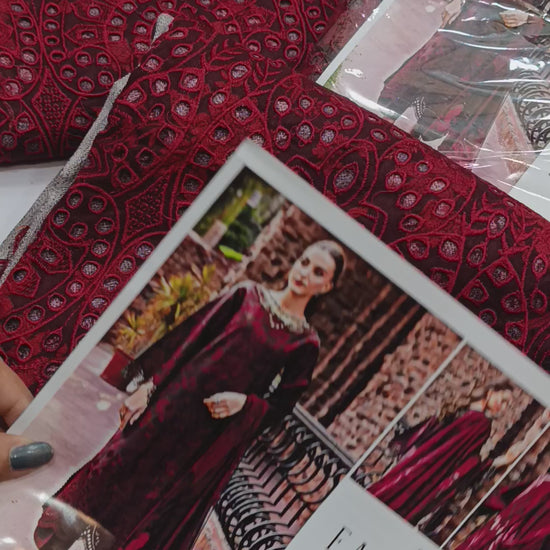 3pc Dhanak printed Farasha Red