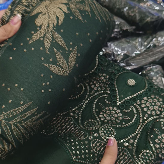 3pc Dhanak with Kanni shawl Green