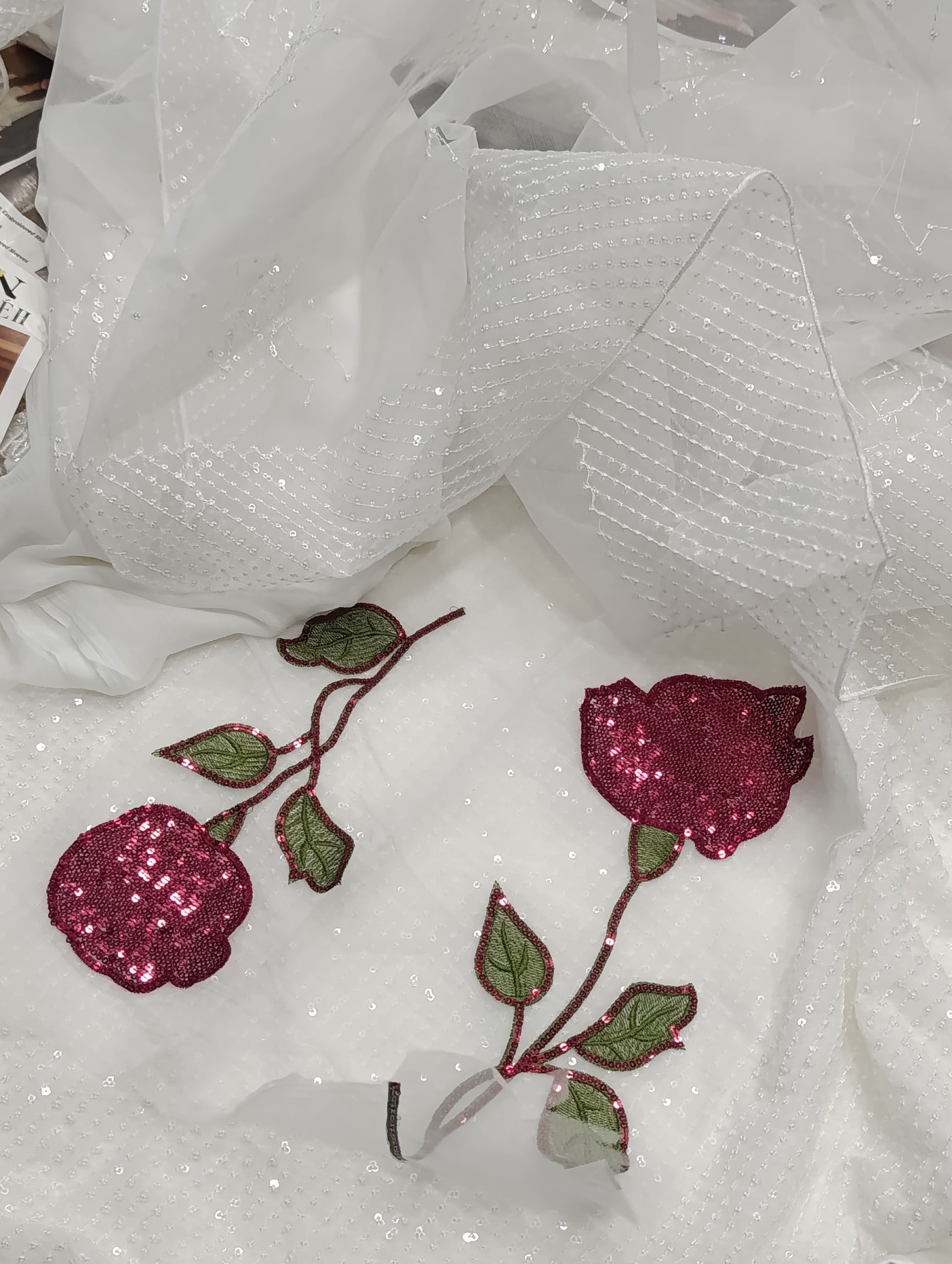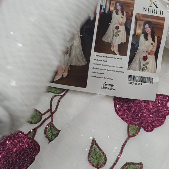 3PC FANCY CHIFFON SEQUENCE WORK NUREH WHITE