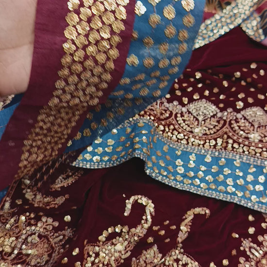 3pc Valvet jazmin with heavy embellished silk dupatta Maroon
