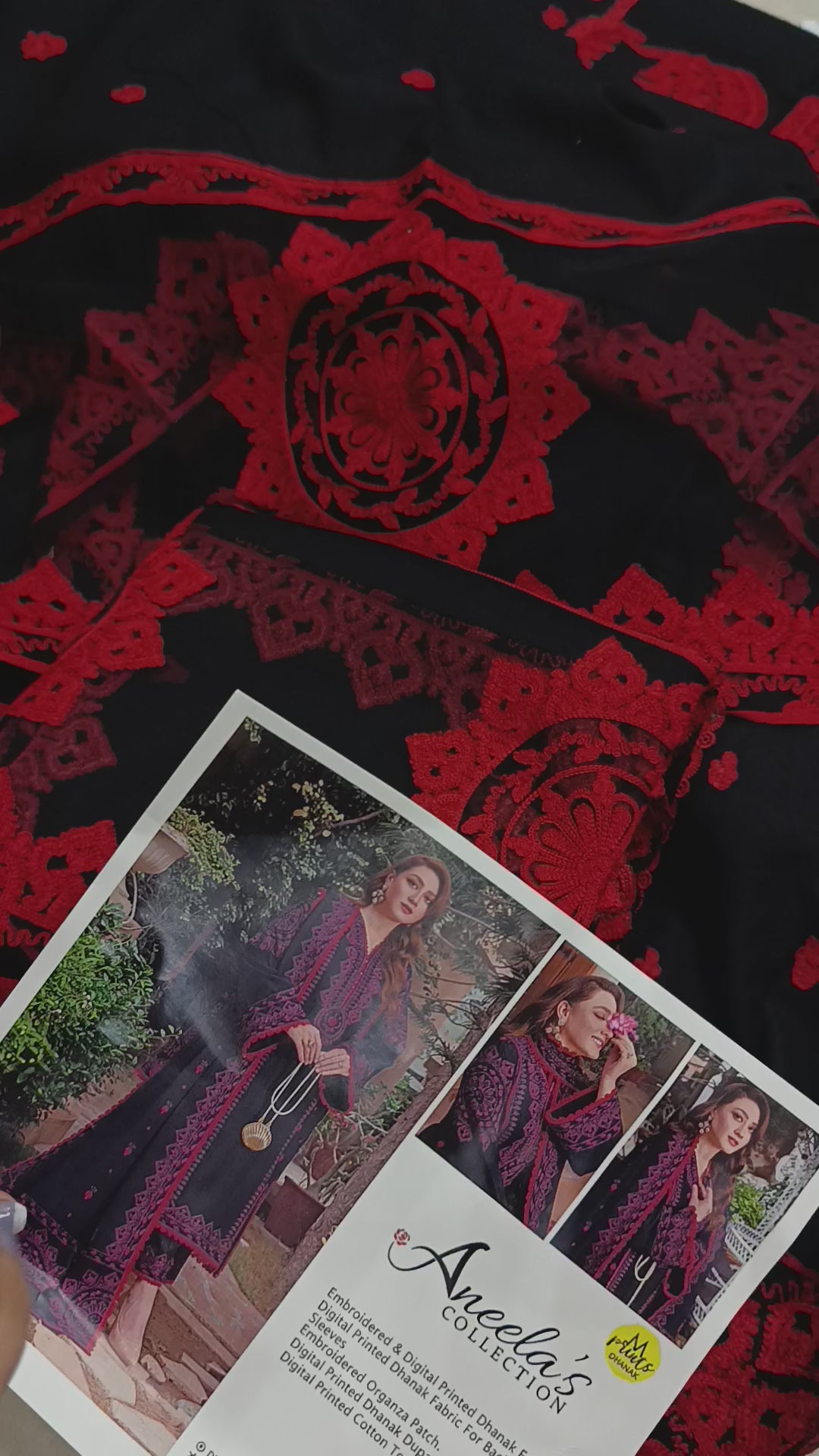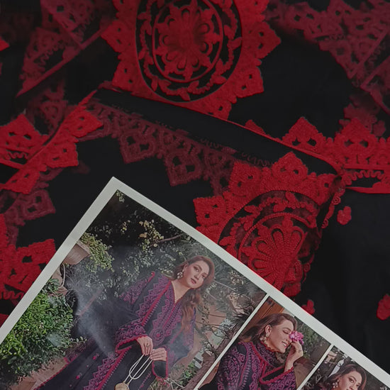 3PC WOOL EMBROIDRY ANEELAS DUPE BLACK RED