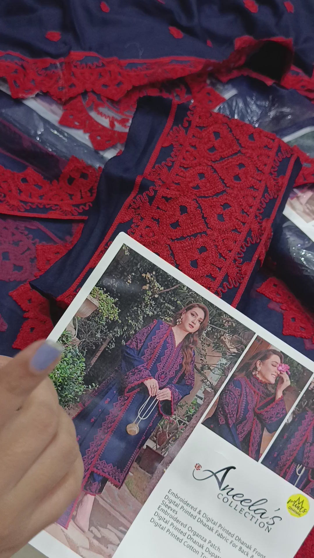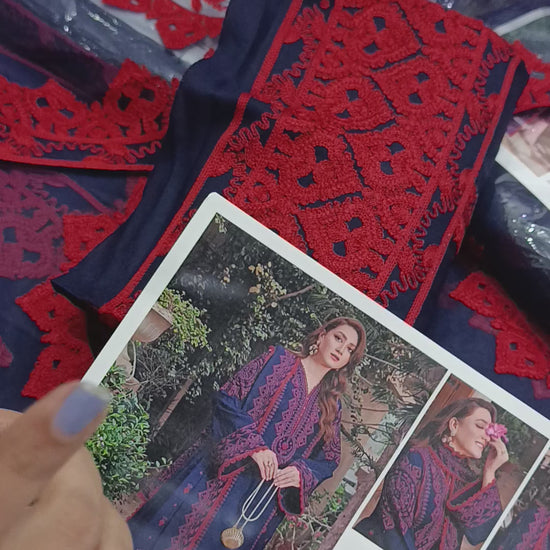 3PC WOOL EMBROIDRY ANEELAS DUPE BLUE RED